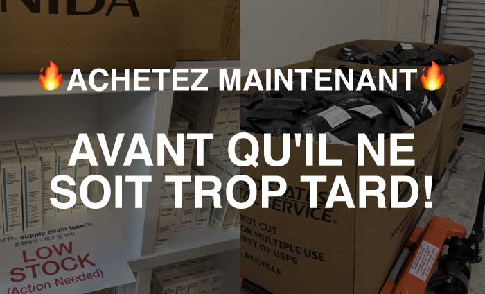 Nous servons nos clients du monde entier depuis nos entrepôts partenaires aux États-Unis et en Corée. Pour les clients américains, nous proposons une livraison nationale depuis notre entrepôt américain. Pour les clients des autres pays, nous expédions directement depuis notre entrepôt en Corée. Nous livrons actuellement dans plus de 20 pays, dont Singapour, l'Australie, le Canada, l'Allemagne, le Japon, le Royaume-Uni et bien d'autres.