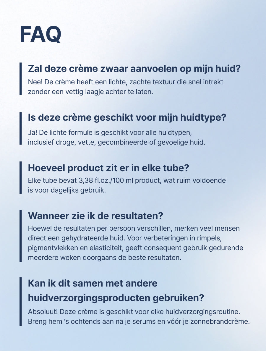 Wij hebben vertrouwen in onze producten. Als ons product niet geschikt is voor uw huid of u bent er niet tevreden mee, bieden wij een 100% geld-terug-garantie*.