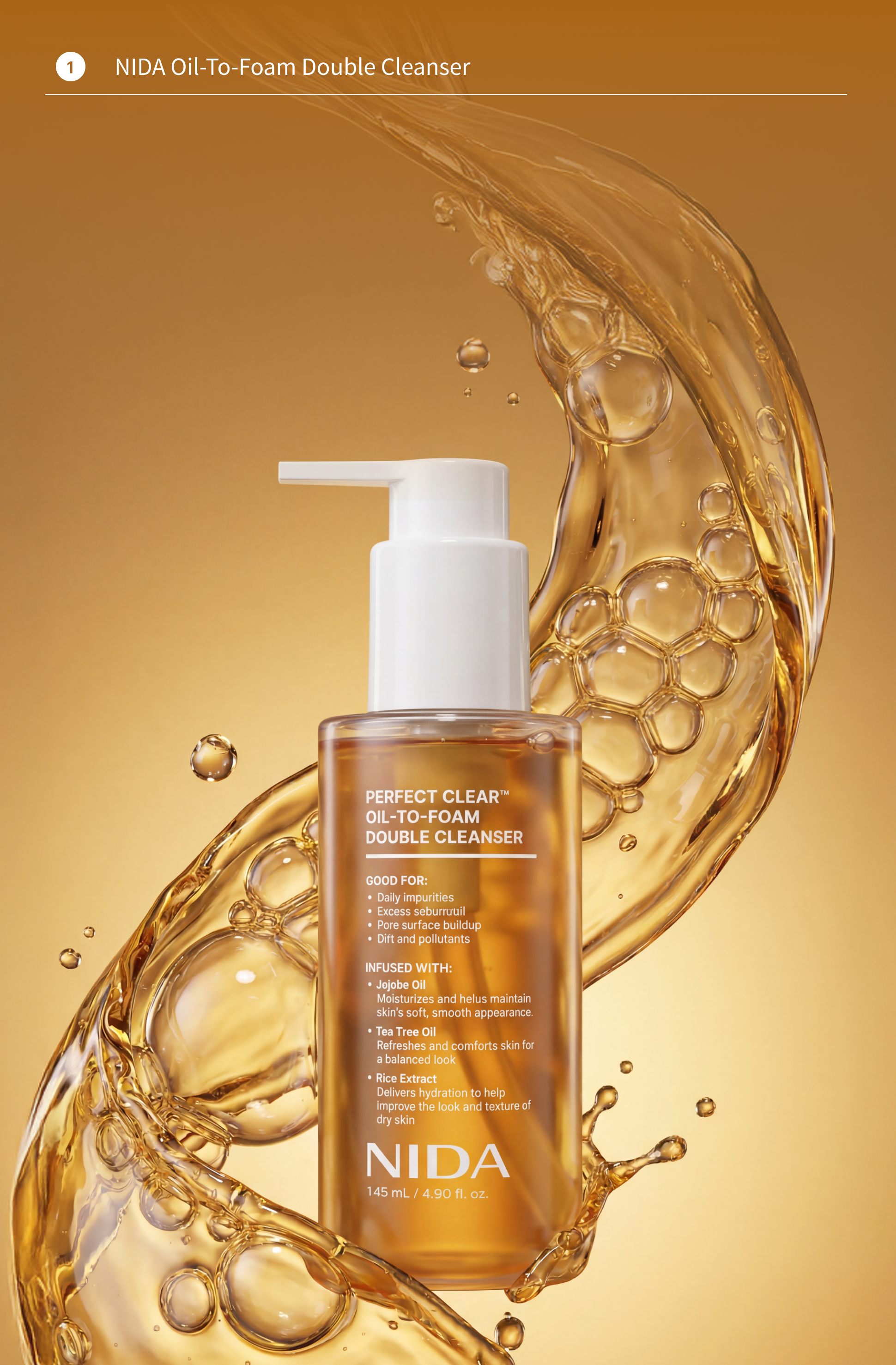 • 1️⃣ NIDA Oil-to-foam Double Cleanser