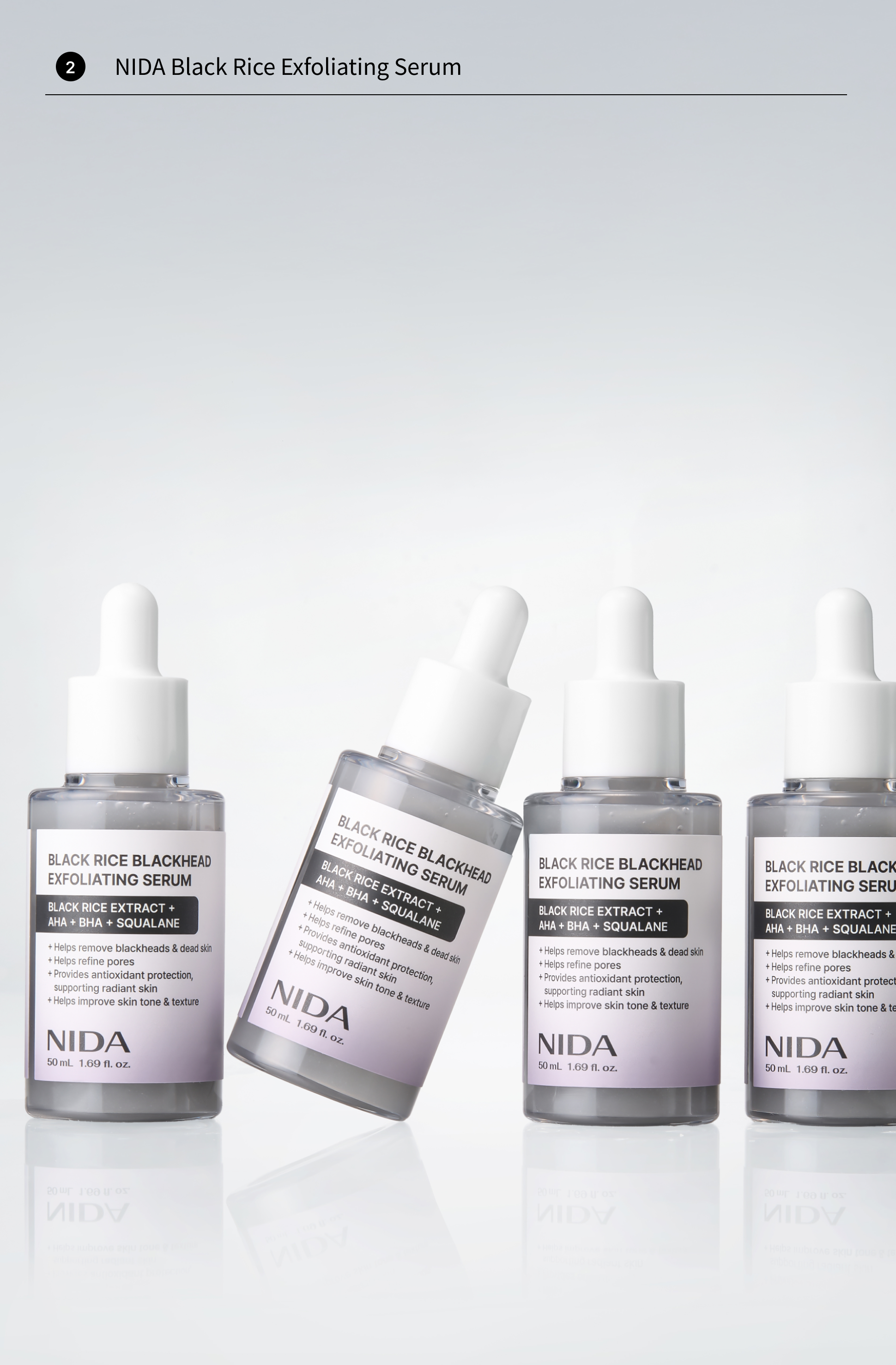 • 2️⃣ NIDA Black Rice Exfoliating Serum