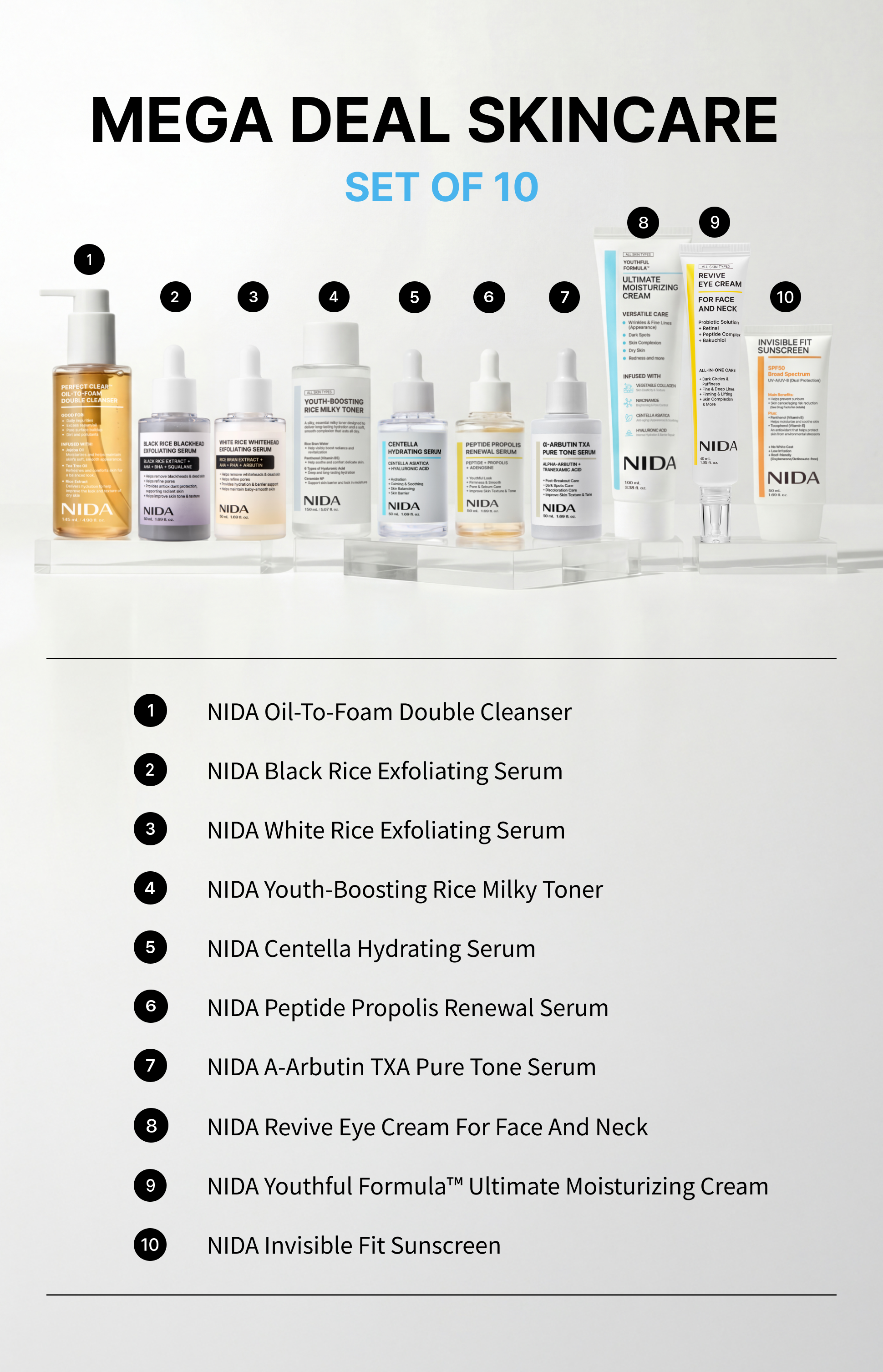 NIDA Mega Deal Skincare Set of 10 (US)