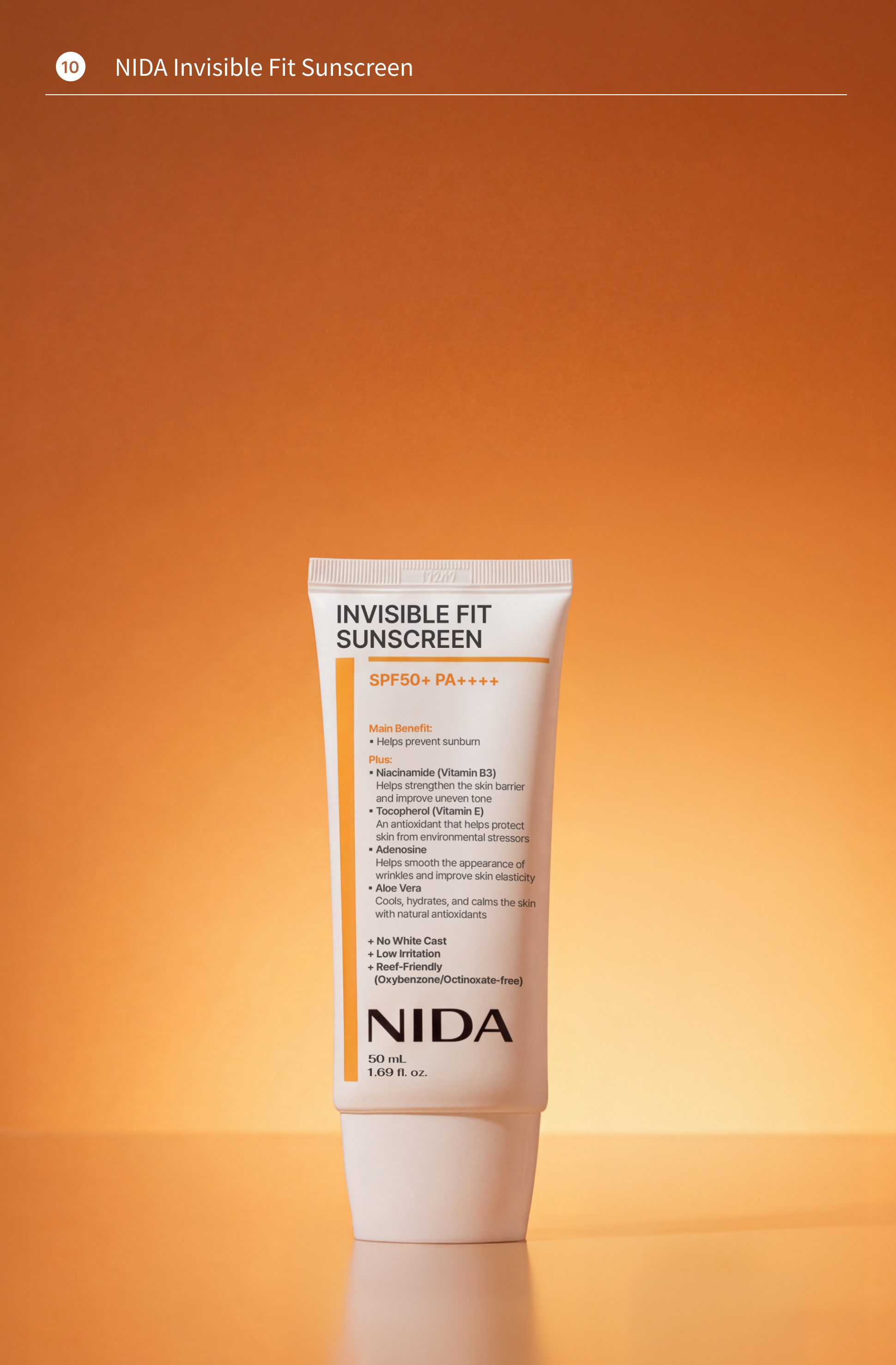 • 🔟 NIDA Invisible Fit Sunscreen