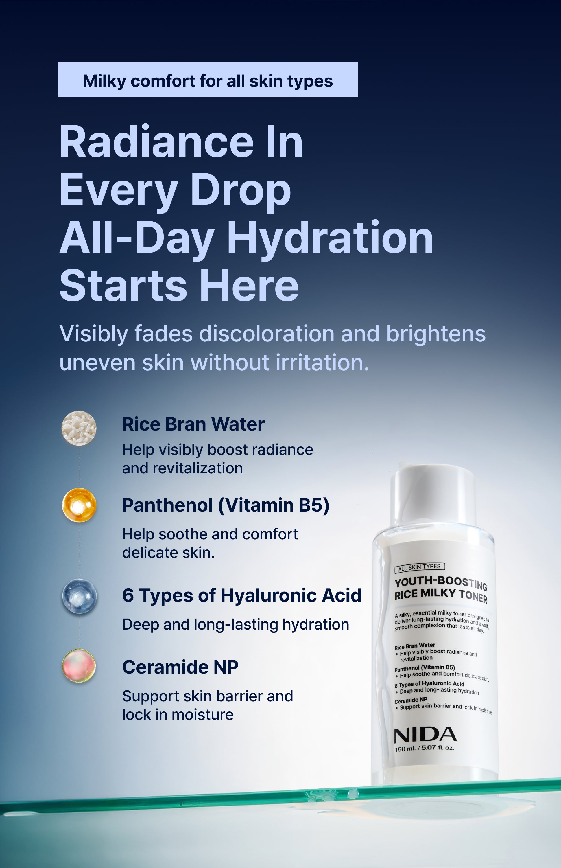 Vitamin-rich rice bran water revives dull skin and brings back your natural glow.